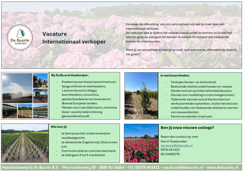 Ben jij commercieel, spreek je goed Engels en heb je zin in een afwisselende baan in het groen?